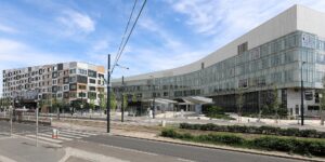 Nemocnica je doslova pretkaná zeleňou. Nájdeme tu rozsiahle vnútorné átriá, strešné záhrady prístupné pacientom a priame prepojenie s vonkajšími parkovými plochami. Zaujímavosťou je, že architektúra myslí aj na personál – ergonomické pracoviská a priestory na oddych majú predchádzať vyhoreniu lekárov a sestier. Celý komplex je navyše prepojený inteligentným systémom podzemnej robotickej logistiky. Malé autonómne vozidlá (AGV) sa bez zásahu človeka pohybujú v servisných tuneloch pod budovou, čím zabezpečujú plynulú distribúciu stravy, čistej bielizne a liekov priamo k výťahom, zatiaľ čo hlavné chodby zostávajú tiché a pokojné pre potreby pacientov.