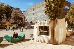 Nábytok dostal meno „Enzi“ (podľa prokuristky Daniely Enzi) a stal sa okamžitým hitom. Tieto geometrické ležadlá nie sú len lavičkami; sú to stavebné kamene komunity. Ľudia na nich ležia, pracujú, jedia, stretávajú sa. Každý rok prebieha online hlasovanie o novej farbe, čo z tohto procesu robí vec verejného záujmu. Či už sú „bazénovo modré“ alebo „ružové ako cukrová vata“, Enzis sa stali symbolom otvorenosti a prístupnosti kultúry. Z dizajnérskeho hľadiska prešli evolúciou na odolnejšie modely „Enzo“ a „Viena“, no ich podstata zostala nezmenená.